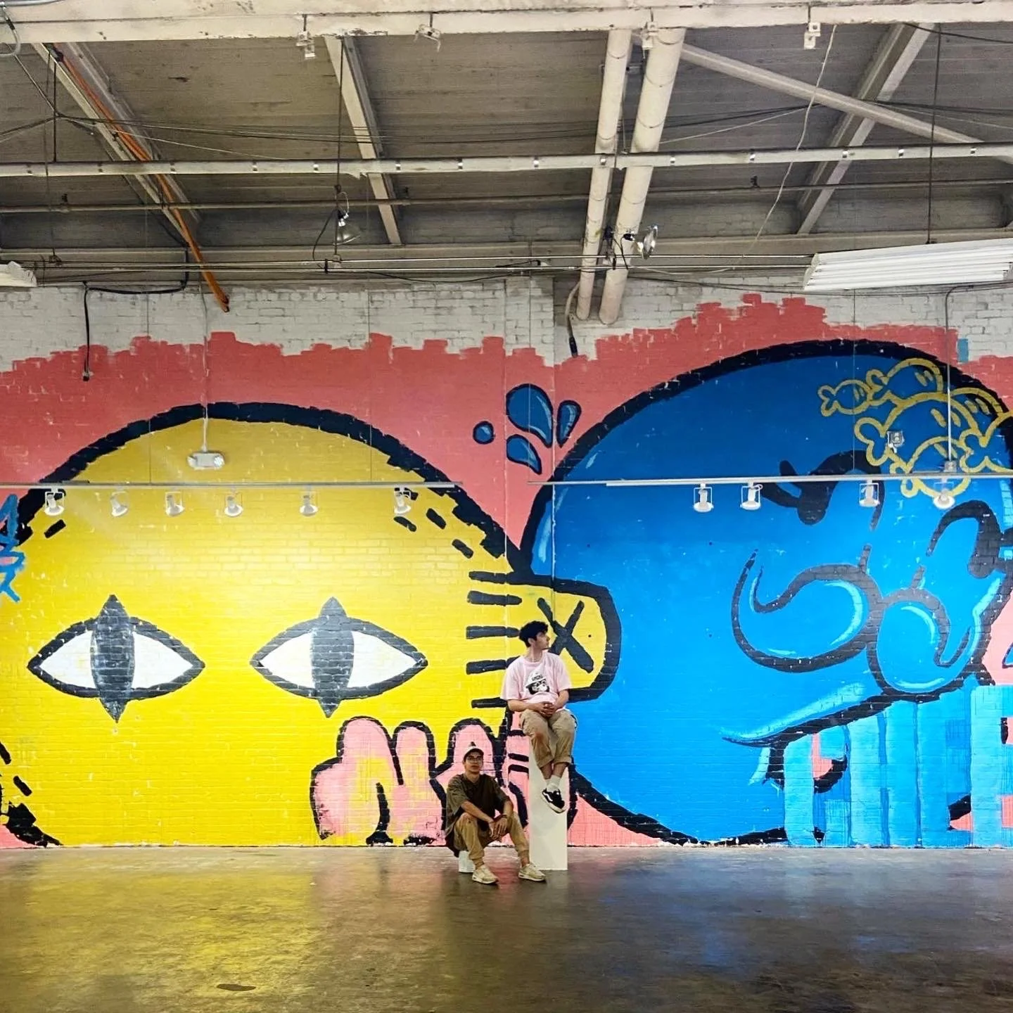 Self-taught and inspired to be an artist since childhood, Naji Al-Ali's practice came to fruition seamlessly. Al-Ali observes that his work "started off as painting and developed into meaning." Parallel to the idea of borderlessness, seen for example in Free Birds, Al-Ali recalls traveling often as a child and "never feeling like I had just one home." This nomad-like freedom fed his creativity while allowing him to forge new ideas of place and belonging in various pockets of the world. Being born in Dubai, growing up in Qatar, and taking annual summer trips to Egypt and Jordan, Al-Ali expresses his need to "create my own home." Though he has yet to step foot on his homeland of Palestine, Al-Ali feels a deep connection to his lineage and roots there. The city of Charlotte also plays a sacred role in his creative life, being the birthplace of his signature Lemonback character, described as "the abstract reflection of the world that we live in." In addition to Lemonback, which also touches on the lemonback species of pythons, Al-Ali pairs his Free Birds with snake imagery as a symbolic reminder of continual evolution and being grounded on Earth.
